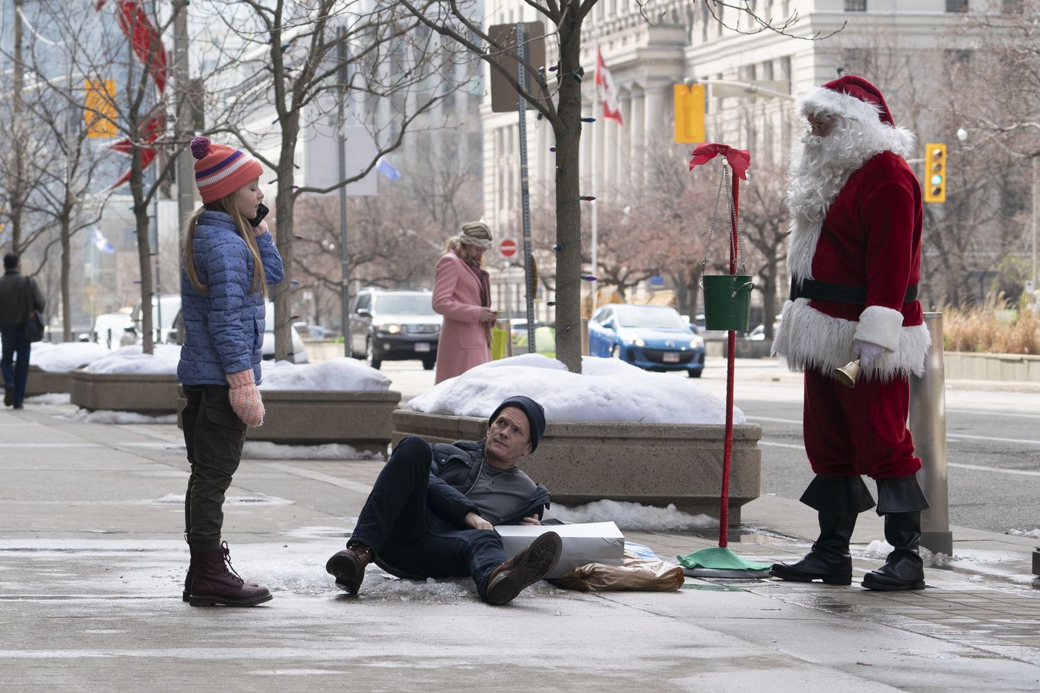 (L-r) SOPHIA REID-GANTZERT as Annie Doyle and NEIL PATRICK HARRIS as Jake Doyle in New Line Cinema and HBO Max’s family film “8-BIT CHRISTMAS.”