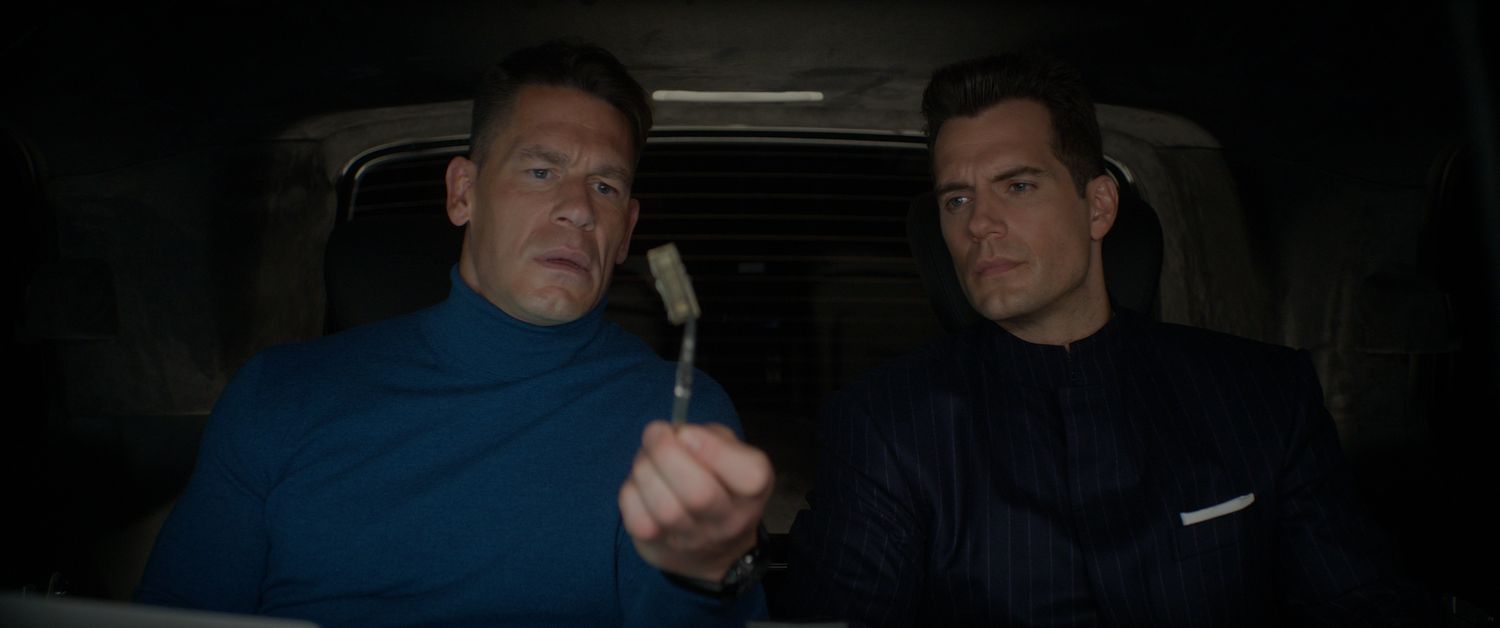 L to R: John Cena and Henry Cavill in ARGYLLE, directed by Matthew Vaughn