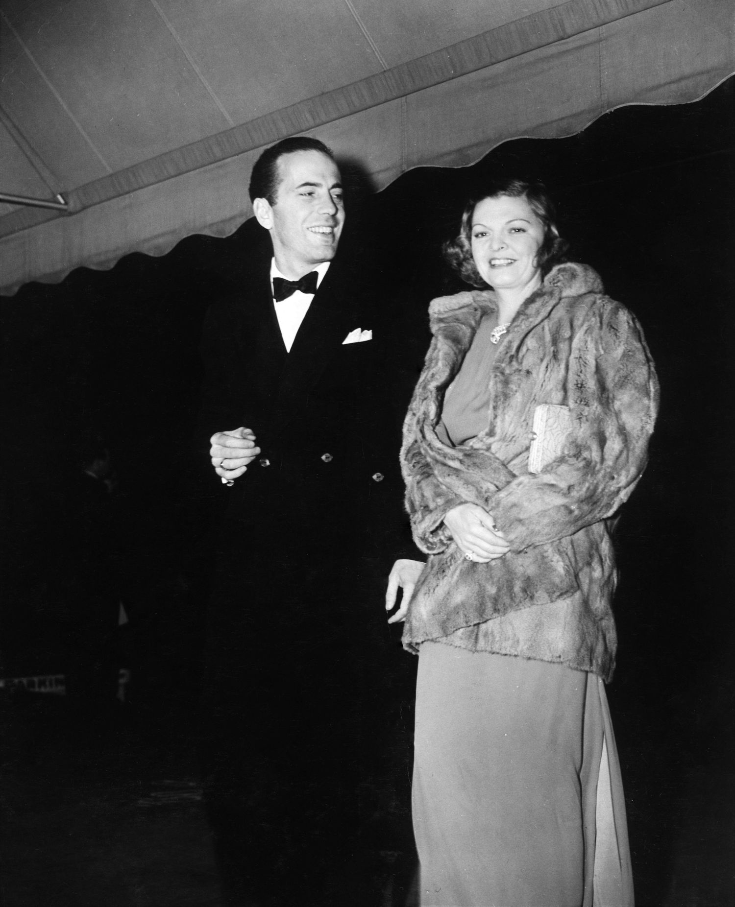 2GG3W7G HUMPHREY BOGART and MAYO METHOT at the 35th Anniversary Party of the original Hollywood Hotel promoting the new Warner Bros. film HOLLYWOOD HOTEL in December 1937
