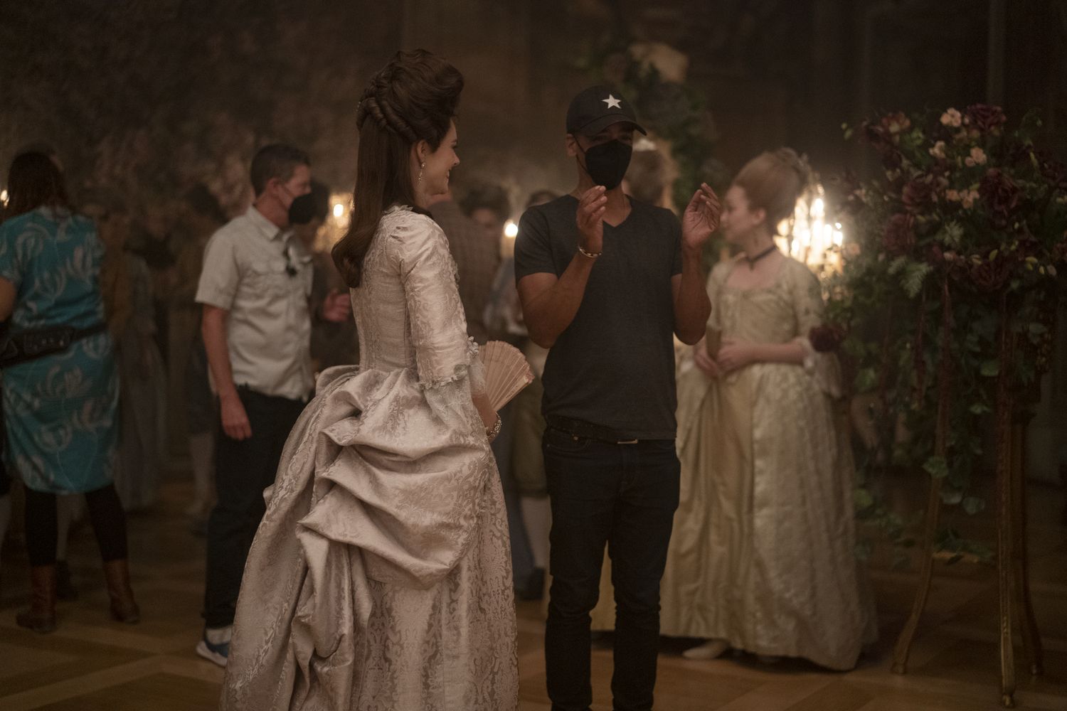 Samara Weaving and Director Stephen Williams on the set of CHEVALIER. Photo by Larry Horricks. Courtesy of Searchlight Pictures. © 2023 20th Century Studios All Rights Reserved.