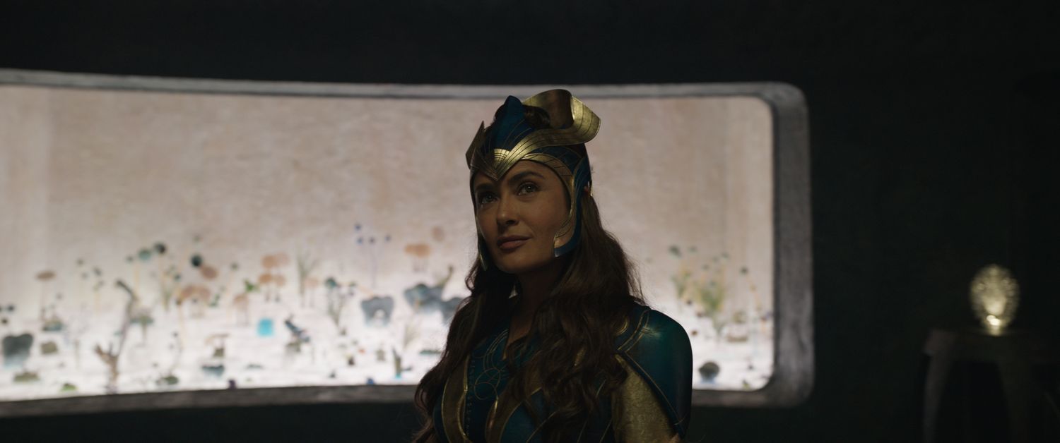 Ajak (Salma Hayek) in Marvel Studios' ETERNALS. Photo courtesy of Marvel Studios. ©Marvel Studios 2021. All Rights Reserved.