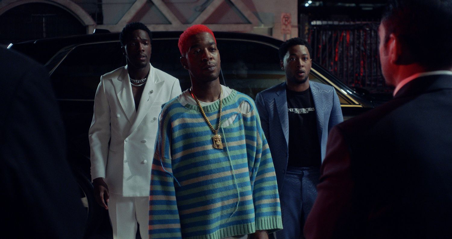 (L-r) TOSIN COLE as Damon, SCOTT MESCUDI as himself and JACOB LATIMORE as Kevin in New Line Cinema’s "HOUSE PARTY,” a Warner Bros. Pictures release.