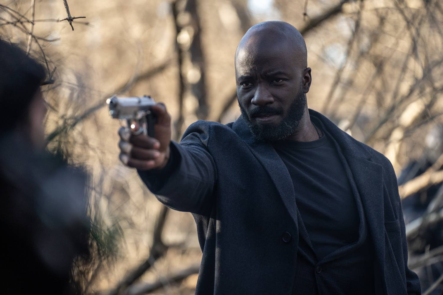 Orlin pulls a pistol on Joe. Joe on edge of frame.