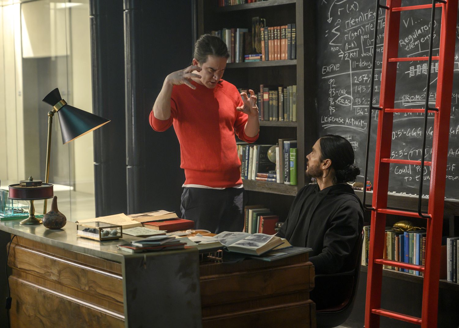 Director Daniel Espinosa and Jared Leto on the set of Columbia Pictures' MORBIUS.