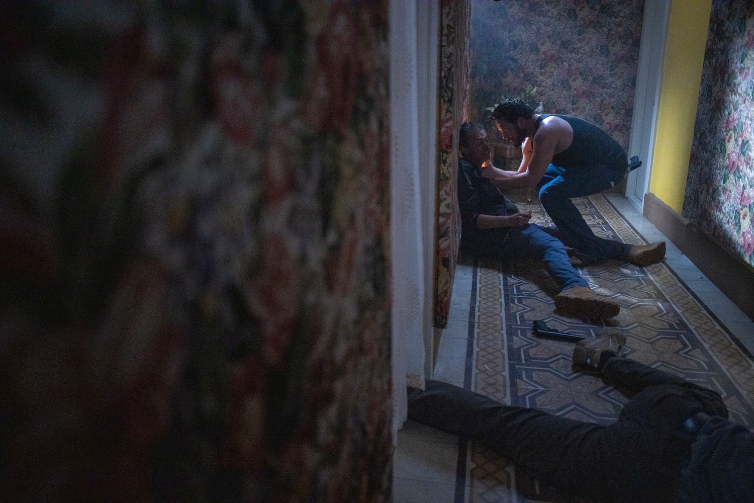 12/19/2020 San Juan, PR--Filming of the feature film Panama, starring Cole Hauser and directed by Mark Neveldine. Scene with Jorge Antares.