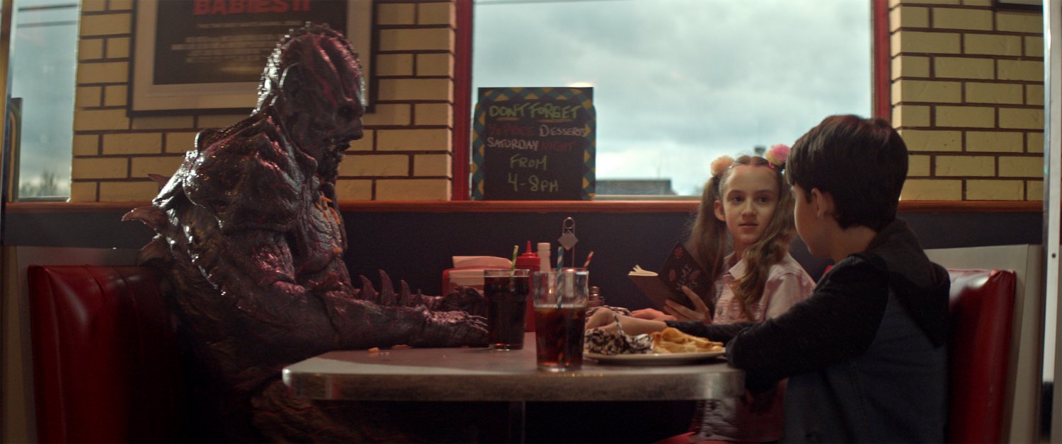 (L-R) Matthew Ninaber as Psycho Goreman, Nita-Josee Hanna as Mimi and Owen Myre as Luke in the horror/action/comedy film, “PG: PSYCHO GOREMAN,” a RLJE Films/Shudder release.