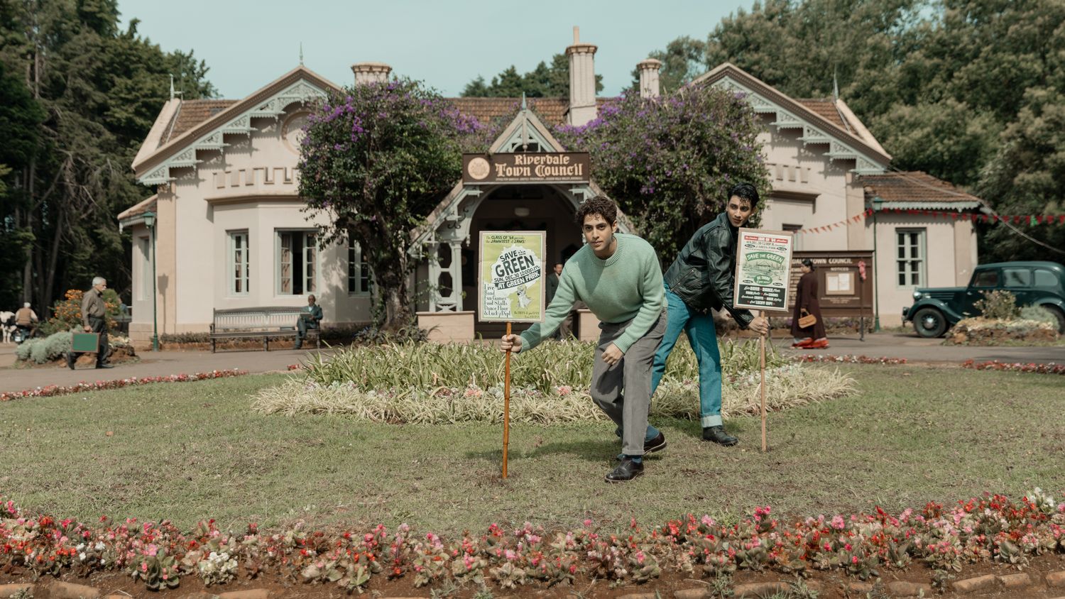 The Archies. (L to R) Agastya Nanda as Archie Andrews, Vedang Raina as Reggie Mantle in The Archies. Cr. Courtesy of Netflix © 2023