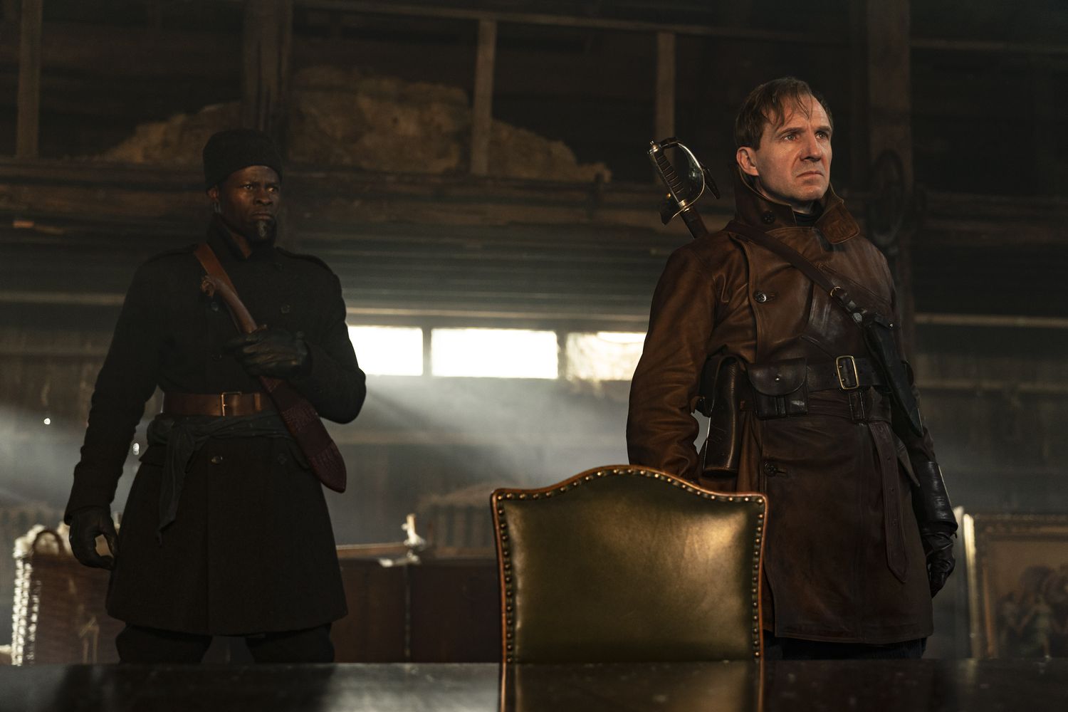 Djimon Hounsou as Shola and Ralph Fiennes as Oxford in 20th Century Studios’ THE KING’S MAN. Photo credit: Peter Mountain. © 2020 Twentieth Century Fox Film Corporation. All Rights Reserved.