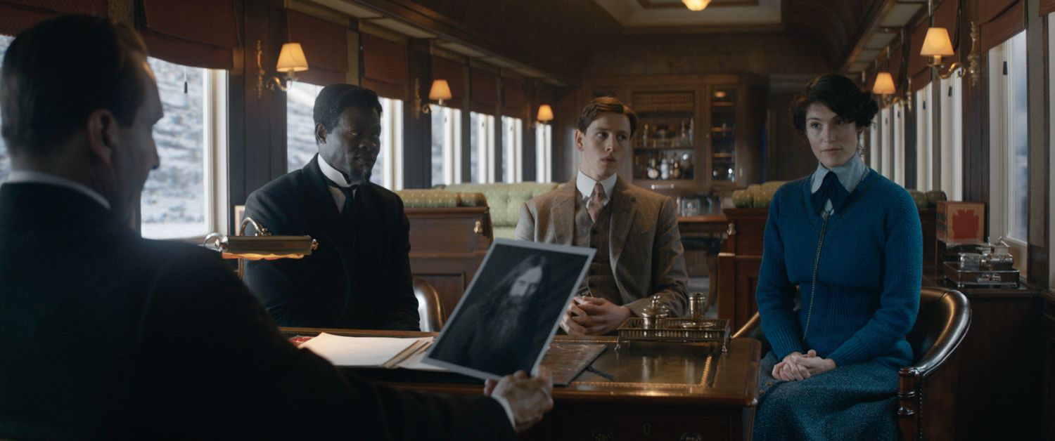 Ralph Fiennes as Oxford, Djimon Hounsou as Shola, Harris Dickinson as Conrad and Gemma Arterton as Polly in 20th Century Studios’ THE KING’S MAN. Photo Credit: Courtesy of 20th Century Studios. © 2020 Twentieth Century Fox Film Corporation. All Rights Reserved.