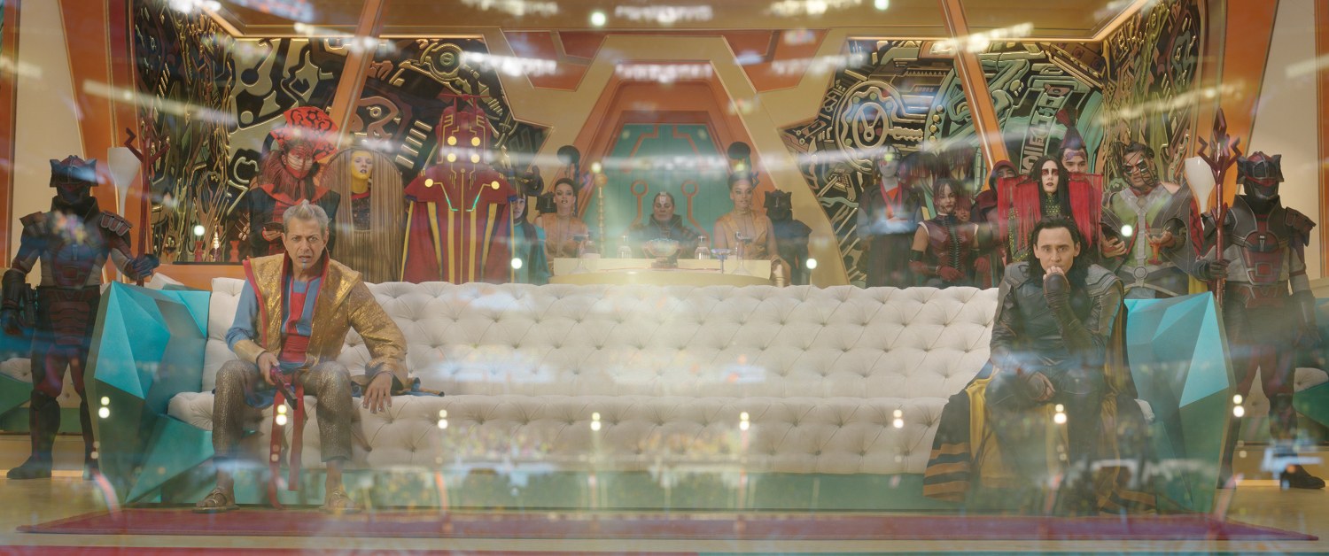 Marvel Studios' THOR: RAGNAROK L to R: Grandmaster (Jeff Goldblum) and Loki (Tom Hiddleston) Ph: Teaser Film Frame ©Marvel Studios 2017