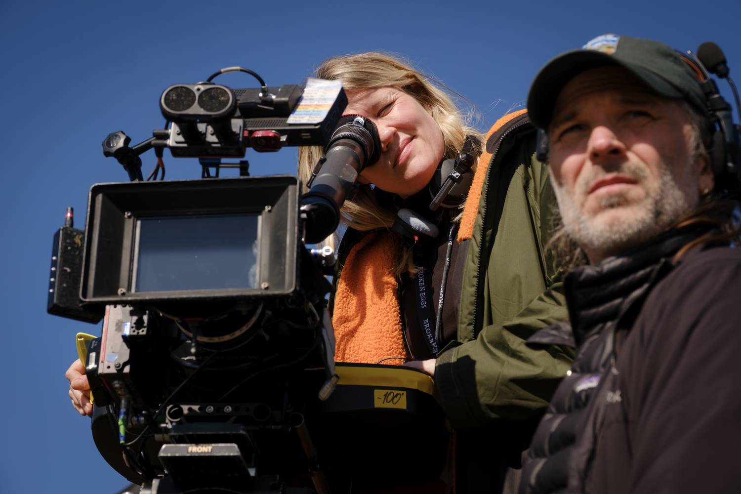 (L-r) Director, Writer, Producer EMERALD FENNELL and Cinematographer LINUS SANDGREN on the set of “Wuthering Heights,” a Warner Bros. Pictures Release.