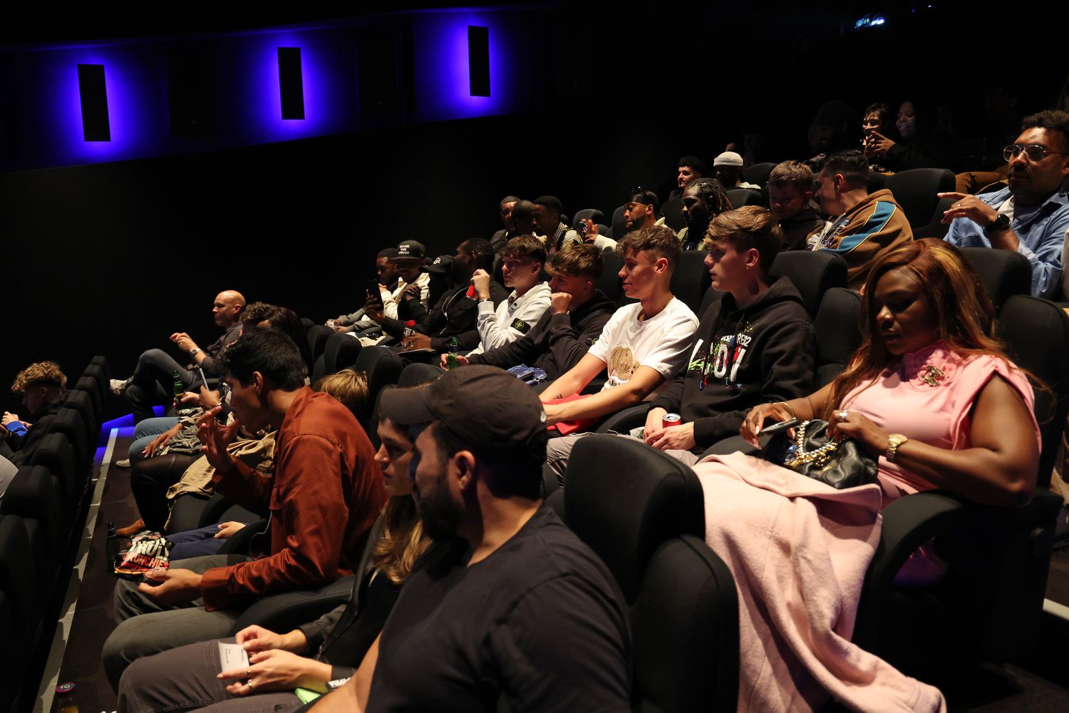 LONDON, ENGLAND - OCTOBER 11: A general view inside the first of its kind, live gaming stream event at Dolby Screening Room, followed by an exclusive screening of the new Paramount Pictures film "Sumotherhood" on October 11, 2023 in London, England. (Photo by Tristan Fewings/Getty Images for Paramount Pictures UK)