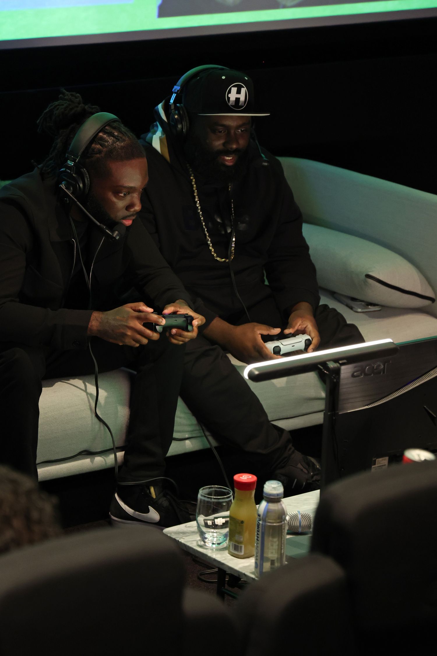LONDON, ENGLAND - OCTOBER 11: Jazzie Zonzolo and P Money take part in the first of its kind, live gaming stream event at Dolby Screening Room, followed by an exclusive screening of the new Paramount Pictures film "Sumotherhood" on October 11, 2023 in London, England. (Photo by Tristan Fewings/Getty Images for Paramount Pictures UK)