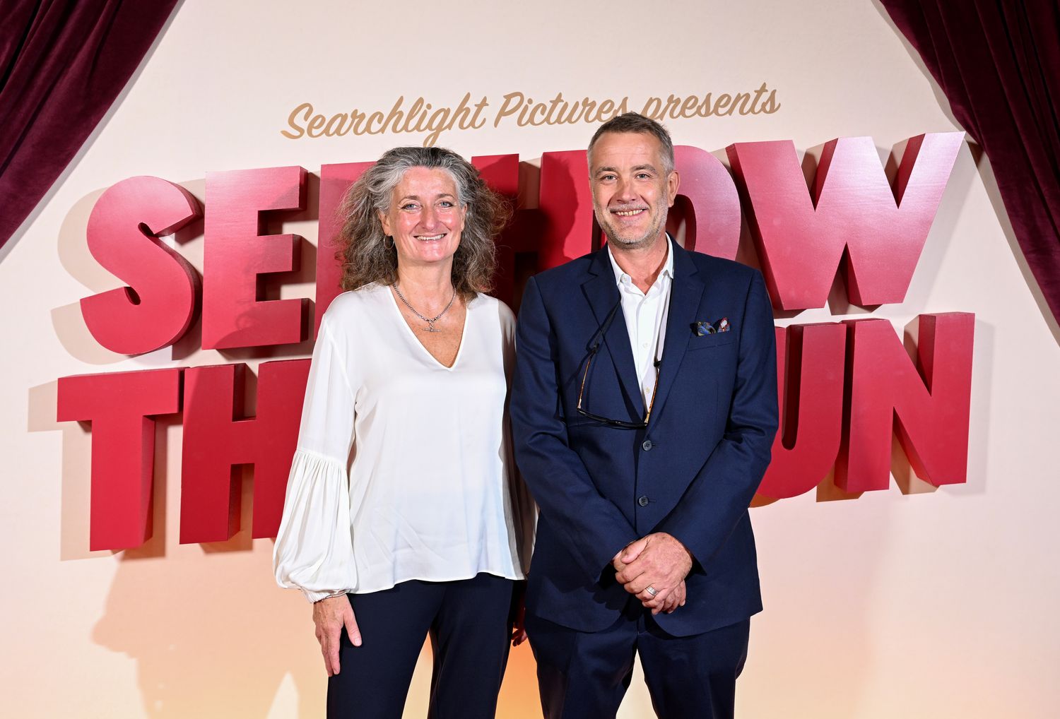 LONDON, ENGLAND - SEPTEMBER 06: Gina Carter and Damian Jones attend the gala screening of Searchight's "See How They Run" at Picturehouse Central on September 06, 2022 in London, England. (Photo by Jeff Spicer/Getty Images for Walt Disney Studios Motion Pictures UK)