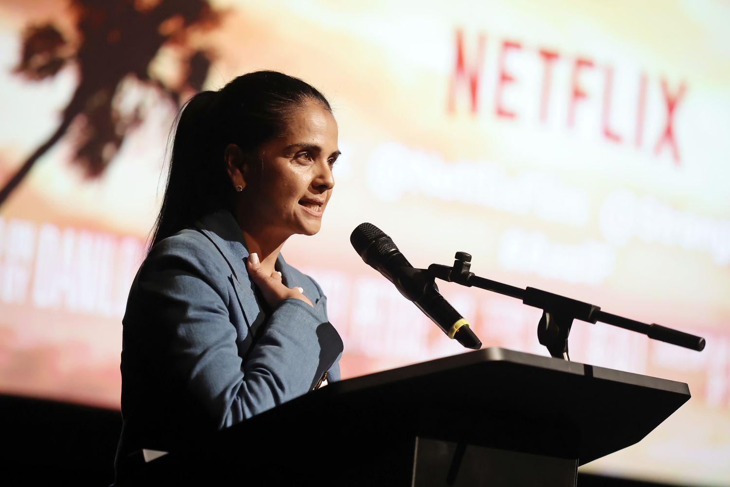BEVERLY HILLS, CALIFORNIA - JUNE 20: Bela Bajaria, CCO, Netflix speaks onstage during the Beverly Hills Cop: Axel F World Premiere at Wallis Annenberg Center for the Performing Arts on June 20, 2024 in Beverly Hills, California. (Photo by Emma McIntyre/Getty Images for Netflix)