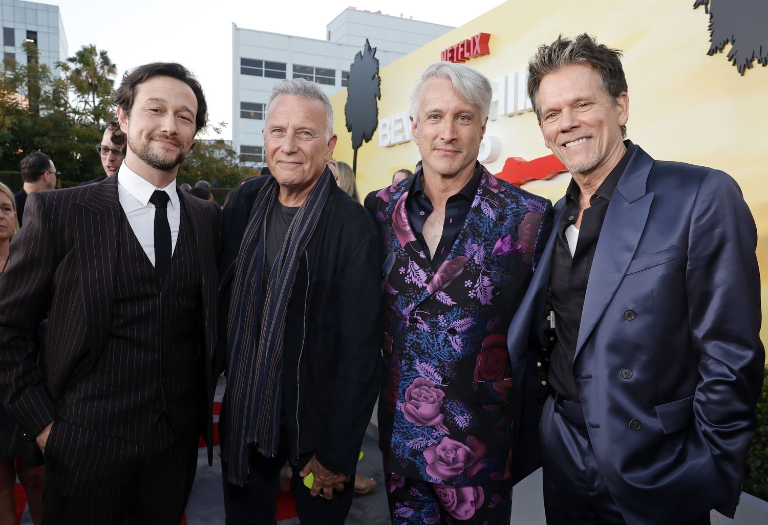 BEVERLY HILLS, CALIFORNIA - JUNE 20: (L-R) Joseph Gordon-Levitt, Paul Reiser, Bronson Pinchot and Kevin Bacon attend the Beverly Hills Cop: Axel F World Premiere at Wallis Annenberg Center for the Performing Arts on June 20, 2024 in Beverly Hills, California. (Photo by Emma McIntyre/Getty Images for Netflix)