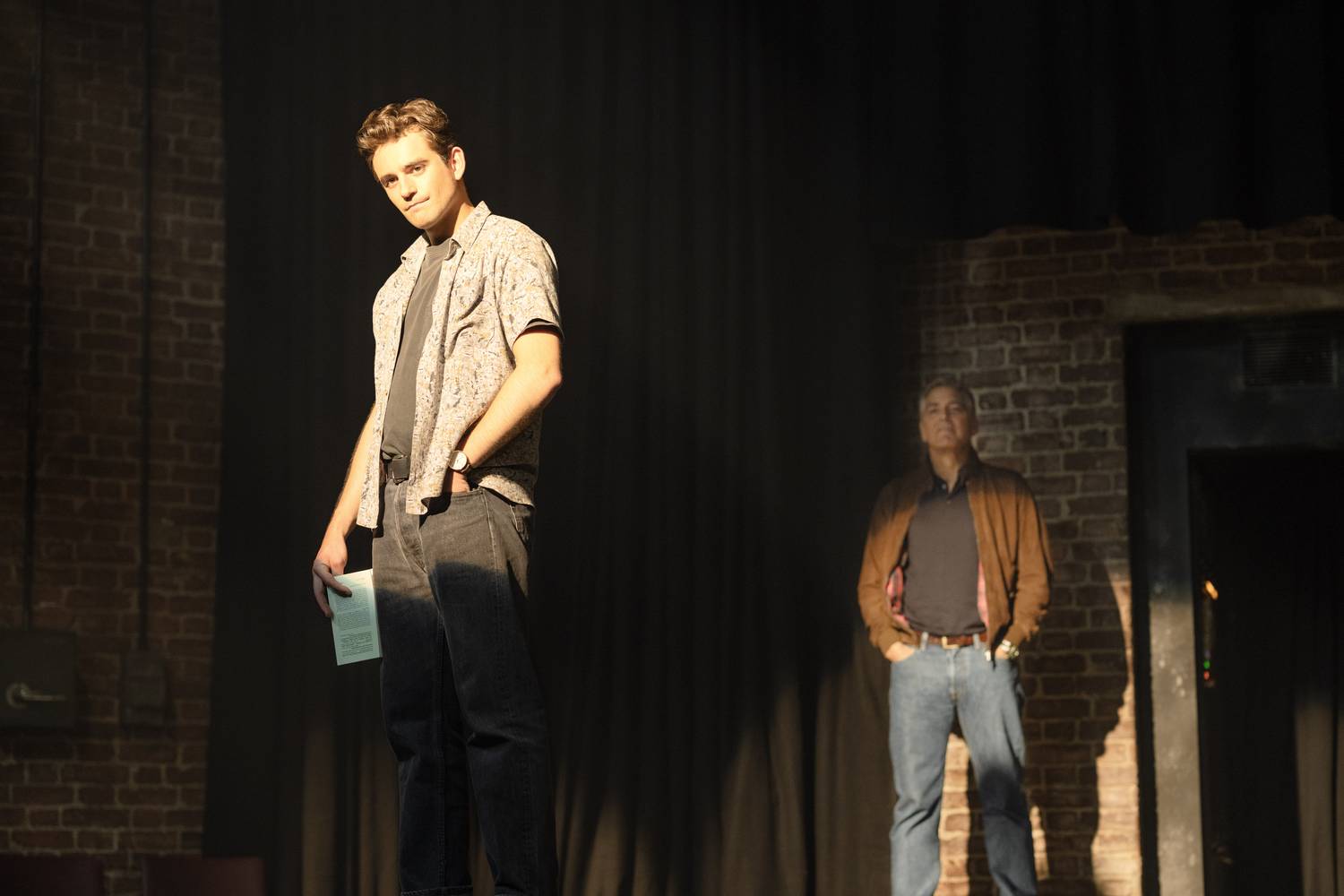 Jay Kelly. (L-R) Charlie Rowe as Young Jay and George Clooney as Jay Kelly in Jay Kelly. Cr. Peter Mountain/Netflix © 2025.